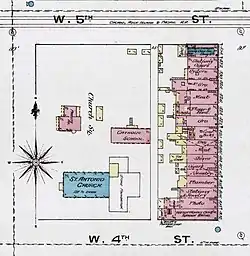 By the turn of the 20th century St. Anthony's became the only church downtown.[4] By the end of the first decade the parish's boundaries had become fixed to the central city with the founding of two parishes on top of the hill: Holy Family (1898) in the northwest part of the city and St. Paul the Apostle (1909) on the east side.