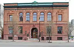 The St. Cecilia Society was founded in 1883 as a women's club devoted to "musical improvement and to the development in the community." The organization was named after Saint Cecilia, the patron saint of musicians.[2] Within a few months membership had grown from nine women to nearly 100. In 1894, the Society decided to construct their own performance space, and hired Chicago architect Henry Ives Cobb to design a new building. The building was dedicated June 19, 1894.[3] The building underwent a major renovation in 1925 to expand the seating capacity. The building was renovated again in 2016.[4]