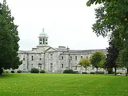 The hospital, which was designed by Francis Johnston, opened as the Carlow District Lunatic Asylum in 1832.[1] It became Carlow Mental Hospital in 1925 and, having been re-named St. Dympna's Hospital, after St. Dympna, the patron saint of mental illness, in 1958, it was taken over by the Department of Health in 1971.[2] After the introduction of deinstitutionalisation in the late 1980s the hospital went into a period of decline.[3][4] Kelvin Grove, a modern residential unit for adult clients with learning difficulties, opened on the site in 2008.[5] The main hospital closed in October 2011.[6]
