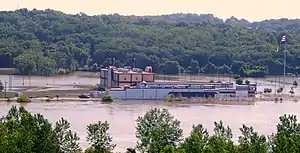 The casino on July 19, 2011 during the 2011 Missouri River floods which temporarily closed the casino.