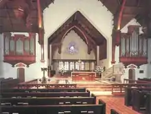 St. John's is the only cathedral in Jacksonville.[3] Inside the building is cavernous; built in the Gothic Revival architectural style, stained-glass windows line the walls. In 1983, Advent Glass Works restored or repaired all stained glass in the cathedral, the cloister and the Cummings Chapel.[4]