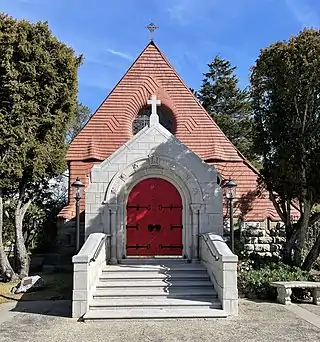 St. John's Chapel, Del Monte is a parish of the Diocese of El Camino Real Episcopal Church in Monterey, California, founded in 1891. Intended for guests at the Hotel Del Monte, the property was donated by railroad tycoon Charles Crocker. St. John's Chapel is an example of an Episcopal church designed by architect Ernest Coxhead, with his shingle style architecture. The Chapel was listed on the National Register of Historic Places on October 21, 2020.[2]