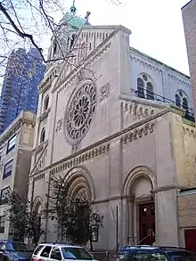 Lammel soon felt that the current church was no longer adequate to the needs of his growing congregation and started to plan for a new church. Construction on the new Romanesque Revival church began in 1894 under the architect J. William Schickel and was completed the following year. The new church was dedicated by Archbishop Corrigan on November 3, 1895.[2] It boasted of an organ made by the noted firm of Müller & Abel, which is still in use.[1] The church also has a harpsichord.[4]