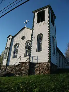 St. Mary's of the Mountain Church was an historic Roman Catholic church on New York State Route 23A in Hunter, Greene County, New York. The church was completed in 1839 and is a one-story, four by two bay, post and beam frame structure on a modern concrete foundation. It features a moderately pitched gable roof, narrow clapboard sheathing, two engaged corner towers, and a Romanesque style engaged entry / bell tower. Also on the property is the parish cemetery.[2]