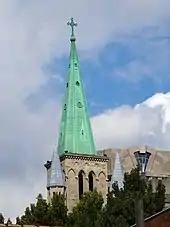 The steeple of the basilica, which stands at 69 metres (226 ft)