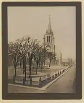 The site of Saint Patrick's Church was purchased, and construction began in September 1843. What was then the outskirts of the town, on a sloped site overlooking parishioners' homes in Point St. Charles, Goose Village and Griffintown, Saint Patrick's seven cornerstones were laid, making it the oldest English-speaking Roman Catholic Church in Montreal.[1] The first mass was celebrated in the church on St. Patrick's Day, March 17, 1847, and in 1850 Samuel Russell Warren built the church's first organ. Adélard Joseph Boucher was the organist from 1853 to 1858, Joseph-A. Fowler followed (1868–1908) and was briefly preceded by Benoît Poirier.