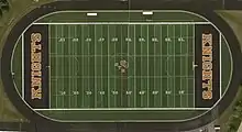 Overhead view of main athletic field at STM.