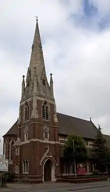 Building of the church started in 1890. The church was extended in 1894 with the addition of two bays of the nave with north and south aisles.[2] In 1898 to 1899 a further extension of the nave and aisles was undertaken and a baptistry and steeple were built.[3] The church was consecrated in 1899.