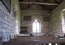 St Mary's is a small chapel, built in stone, some 18 feet (5.5 m) long, with a rectangular plan, and a bellcote at the west end. Its interior is very simple, containing benches dating possibly from the medieval period. On the east wall of the chapel are boards containing sentences from the Holy Communion service dating from the 18th century. Also in the chapel are a three-decker pulpit, a stone altar, and a font.[3]