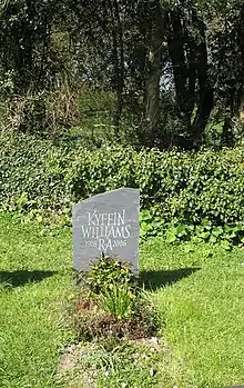 James Williams, rector of St Mary's from 1821 to 1872, helped to establish the Anglesey Association for the Preservation of Lives from Shipwreck in 1828, in the wake of a storm that caused a boat to sink with 140 deaths.[8] He was awarded a gold medal by the Royal National Institute for the Preservation of Life from Shipwreck (later renamed the Royal National Lifeboat Institution) in 1835, for his efforts in the rescue of a boat during a gale.[13] Angharad Llwyd, writing when Williams was at St Mary's, noted that "this benevolent gentleman, aided by his lady, ever alert in the cause of humanity, are generally among the first on the shore, in case of accident, well supplied with restoratives, and other necessaries, to comfort and protect the suffering mariners."[4] The artist Sir Kyffin Williams (1918–2006) was a great-grandson of James and his wife Frances. At his request, a memorial to them was put up on the south wall of the chapel.[3] James, Frances and Kyffin are buried in the churchyard.[8][14] The churchyard also contains the Commonwealth war graves of a Royal Navy sailor of World War I and another from World War II.[15]