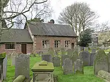 The south-west of the churchyard included an access to St. Mary's Grammar School until the churchyard was remodelled in 1837, with the entrance moved to the southern side because of vandalism to the windows and gravestones.[5]:17 The school was first endowed by Bishop Sherbourne in 1520 and rebuilt by Sir Edward Mosley, 2nd Baronet in 1640.[5]:17 It closed as a school in 1909 when a council school was opened in the village, and is now used by various village organisations.[5]:17:22 The former school was granted protection as a grade II listed building on 26 March 1986.[11] The churchyard as a whole is listed as a scheduled monument.[5]:64