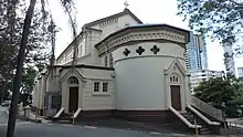 St Mary's Church, South Brisbane, is a late 19th-century rendered brick church designed by Brisbane architects, Simkin and Ibler and constructed by Woollam and Norman in 1892–1893. At the time of its opening on 2 July 1893, construction of the church was not finalised. The proposed tower, transepts and chancel were never built and it was not until 1929 a permanent sanctuary was added to the eastern end of the church to the design of architects Cavanagh and Cavanagh. The former presbytery (now parish house), built at about the same time as the church, was completed by February 1893.[1]