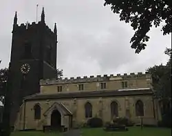 St Mary's Church is located on Church Lane next to Swillington Primary School, on Wakefield Road, Swillington, West Yorkshire, England. There has been a church at this location for at least 900 years. The Domesday Book of 1086 notes that 'a church is there' but no other records of that building remain. The church on the site today is a Grade II* listed building, over 600 years old, built around 1360.[1] The tower was renovated in 18831884 with Harehills Stone, which has now weathered almost black, in stark contrast to the creamy yellow of the rest of the exterior. Thomas Dealtry, rector of Swillington 18721878, is credited with having introduced the habit of throwing confetti at weddings, from his observation of rice thrown at Hindu weddings in his previous position as Archdeacon of Madras.[2] His predecessor, the Rev A. F. A. Woodford, rector 18471872, was a noted masonic scholar and publisher, and became Grand Chaplain in 1863. He is credited, in 1886, with passing to William Wynn Westcott the Cipher Manuscripts leading to the formation of the Hermetic order of the Golden Dawn.