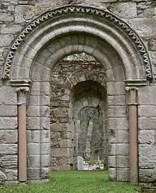 St Mary's Kirk at Auchindoir, between Rhynie and Lumsden, in Aberdeenshire, Scotland, is one of the country's finest surviving medieval parish kirks. The main doorway is early Romanesque, and there is a well-preserved early 16th-century sacrament house, similar to those at Deskford and Kinkell.[1]