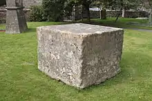 Outside the church is a 5 feet (1.5 m) cube of dressed stone, from Dundry Main Road South Quarry. It known as the dole table, which was used to give alms to the poor.[7] There is also a 3 metres (9.8 ft) high churchyard cross on an octagonal base. The head of the cross was installed in the 19th century to the same design as one which had previously occupied the site. It has been scheduled as an ancient monument.[8]