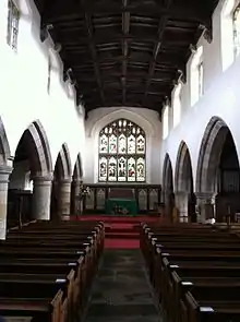 The church dates largely from the 15th century, but there is some earlier work.[2] It is of stone construction in the Perpendicular style, consisting of a five-bay chancel and nave, aisles, south porch and an embattled western tower with pinnacles containing a clock and six bells.[3][4]