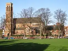 St Peter's Church or St Peter Apostle Church is a Roman Catholic parish church in Leamington Spa, Warwickshire, England. It was built in 1864 and designed by Henry Clutton in the Gothic Revival style. It is located on Dormer Place, next to the Royal Pump Room Gardens. It is a Grade II listed building.[3]