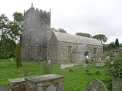 The church is dedicated to St Petrock. Parts of the building, including the chancel and the lower part of the tower remain from the 13th century but much of the current fabric dates from a reconstruction in the early 16th century.[2]