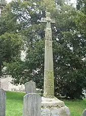 South of the church lies an Anglo Saxon high cross. The cross is carved sandstone and consists of a base, measuring 1.5 metres (4 ft 11 in) by 1.4 metres (4 ft 7 in), with a shaft and cross head. 11th-century carvings on the shaft depict the legend of Sigurd.[10]