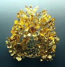 An outstanding example for antique jewelry is the gold Funerary Garland from Armento (4th century BC). A Golden Diadem from the Black Sea, an elaborately decorated headdress from the Crimean Peninsula was produced in around 150 BC.