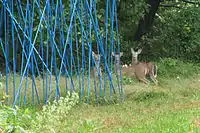 Kept Out consists of a pair of deer exclosures, the fenced areas to keep deer out: one built near the artist's studio in a woodland in Pennsylvania's Ridge and Valley region and the other at the woodlands edge of Schuylkill Center for Environmental and Education in the Piedmont ecosystem. Both sites face a great deal of deer pressure.[28]