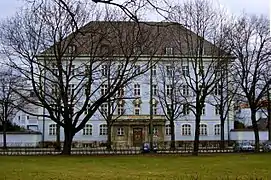 The Stadtarchiv is located in the former municipal military office; the building was built in 1912–1914, also by Hans Grässel; it is an historically listed building. A large extension through plans by Hans-Busso von Busse, was built in 1990.[3] Today, the Stadtarchiv occupy the entire block between Winzerer, Elisabeth, Schleißheimer and Hohenzollernstraße.[2]