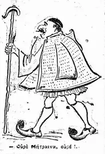 A cartoon by Stam. Stam depicting «Mitros», a characteristic type of Roumeliote villager (around 1930).