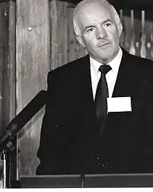 ![]() Stanley O'Toole speaking at a Warner Bros.-Village Roadshow conference in 1990 | |