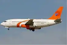 A Starline Boeing 737-200 approaches Dubai International Airport in 2008.
