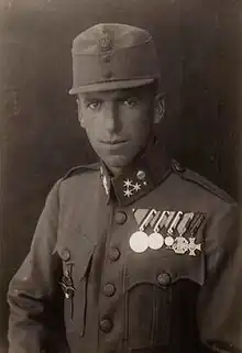Fejes scored his first aerial victory on only his third operational sortie. After this promising start, he became an ace piloting the two-seater, as he and his observers downed five Italian planes together. Fejes won the Silver Bravery Medal Second Class, followed by two additional First Class awards.[1] His dogfight on 19 June 1917 may have been the fount of one of these awards; that was the day that Fejes and Josef Pürer singlehandedly took on a flight of Italian Nieuport fighters, claiming two and having their own plane downed near Schönpass in the process. Certainly, Fejes' reputation with his superiors did not hurt; they evaluated him as "earnest, modest, industrious, dependable" with good technical knowledge but a poor command of German.[4] That his victories were scored in the course of the usual duties of a reconnaissance squadron could not fail to impress.[5]