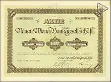 Share for 500 kroner of Neue Wiener Bankgesellschaft dated 18 January 1922