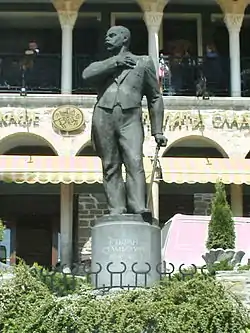 He was killed in the center of Sofia[3] by a plot from the Internal Macedonian Revolutionary Organization (IMRO), including Naum Tyufekchiev, for his support to the Ottoman Empire, his dictatorial methods and his repression of the IMRO.[4][5]