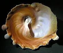 The beautiful sea snail is a deposit feeder and feeds on detritus and other small microorganisms. The species uses its tall and heavily spirally rigid base and unique wide umbilicus to create a “feeding cone” beneath themselves.[5] In a similar fashion to most species in the Xenophoridae family, the beautiful sea snail uses locomotion referred to as a “leaping motion” or “a one-legged stomp” by extending its strombidae (foot) and muscular column which then contracts pulling the shell over.[2] The beautiful sea snail has a small and multi-spiral protoconch which suggests a planktonic larval life which is believed to be rather long to account for the wide geographical range it occupies.[2]