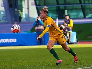 Stephanie-Elise Catley (born 26 January 1994) is an Australian professional soccer player who plays as a defender for Arsenal and the Australia national team.[3][4] She can play in many positions in defence, such as left-back, centre-back or sweeper.