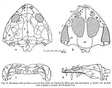- ↑ Owen, Richard (1854). "Description of the Cranium of a Labyrinthodont Reptile (Brachyops laticeps) from Mangali, Central India". Quarterly Journal of the Geological Society. pp. v. 10, issue.1–2, pp. 473–474. Retrieved 18 March 2012.