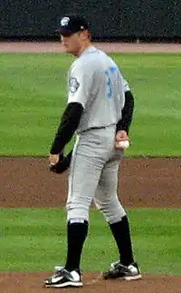 San Diego State used Strasburg as a relief pitcher in his freshman year; he began the season pitching in middle relief before becoming the Aztecs' closer.[10][12] He held opponents to a .141 batting average against and was named Co-Freshman of the Year for the Mountain West Conference.[13] In the summer of 2007, Strasburg also played for the Torrington Twisters of the collegiate summer baseball New England Collegiate Baseball League (NECBL). He was named to the NECBL First Team as a closer, and was also chosen as the Top Pro Prospect and Top Relief Pitcher in the NECBL.[15][16]