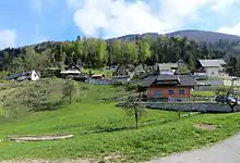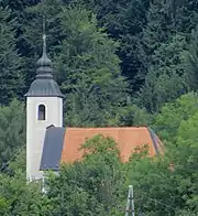 The local church is dedicated to the Holy Cross and dates to 1751, when the old church in the center of the village was demolished and the current church was built on a small hill above the village.[4] The church features Stations of the Cross painted by Leopold Layer (1752–1828).[3]