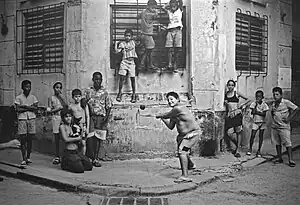 In fungo, the batter tosses the ball into the air and hits it on the way down or after one or more bounces.[1] Another variant is Vitilla, a popular variation of stickball played primarily in the Dominican Republic and areas in the United States with large Dominican populations.