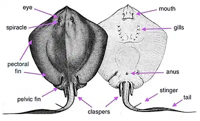 External anatomy of a male bluntnose stingray (Hypanus say)