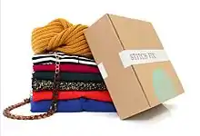 Stitch Fix is a personal styling service that sends individually picked clothing and accessories items for a one-time styling fee. Customers fill out a survey online about their style preferences.[21] A stylist at the company picks five items to send to the customer. Stylists pick items based on a customer's survey answers and any access the customer gives them to their social media outlets. The customer schedules a date to receive their items, which is referred to as a "Fix". Once the shipment is received, the customer has three days to choose to keep the items or return some or all of them. If the customer keeps at least one item, the initial styling fee is credited towards the cost of the item. In addition to the styling fee being credited, if the customer decides to keep all five items, the customer receives 25% off the total cost of the items. Customers choose the shipping frequency, such as every two weeks, once a month, or every two months. The company also supports integration with Pinterest boards, allowing customers to add photos of fashion looks that they like. These boards may be viewed by a Stitch Fix stylist.[22][23]