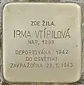 Irma Vtípilová née Weiss was born on 5 April 1898 in Kameničky to Jindrich Weiss (1856-1922) and Josefa née Iltisova (1861-1926). She had seven siblings. She was married to Frantisek Vtipil. The couple had two children. On 5 December 1942 she was deported from Pardubice to Theresienstadt concentration camp by transport Cf. Her transport number was 314. On 23 January 1943 she was deported from there to Auschwitz-Birkenau by transport Cr, Train Da 103. Her transport number was 1133. She was murdered there upon arrival.[1]