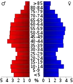 In the county, the population was spread out, with 20.6% under the age of 18, 6.2% from 18 to 24, 19.4% from 25 to 44, 31.0% from 45 to 64, and 22.8% who were 65 years of age or older. The median age was 37.2 years. For every 100 females there were 97.8 males. For every 100 females age 18 and over, there were 96.2 males.