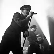 Sven-Erik Lind performing at Elements of Rock in Uster, Switzerland, 2013, wearing early-20th century military regalia
