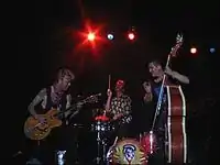 Stray Cats are an American rockabilly band formed in 1979 by guitarist and vocalist Brian Setzer, double bassist Lee Rocker, and drummer Slim Jim Phantom in the Long Island town of Massapequa, New York.[1] The group had numerous hit singles in the UK, Australia, Canada, and the U.S. including "Stray Cat Strut",[2] "(She's) Sexy + 17", "Look at That Cadillac", "I Won't Stand in Your Way", "Bring It Back Again", and "Rock This Town", which the Rock and Roll Hall of Fame has listed as one of the songs that shaped rock and roll.[3]