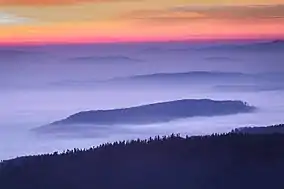 ![]() Sunrise and morning mist over Sudety Wałbrzyskie Landscape Park | |