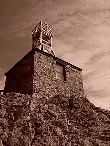 The mountain has been the site of two research facilities. In 1903, a meteorological observatory building was completed atop Sanson Peak. This building still exists and visitors can look through a window to see its interior complete with rustic furnishings. In the winter of 1956-57, the National Research Council built a small laboratory on Sanson's Peak in order to study cosmic rays as part of Canada's contribution to the International Geophysical Year (IGY). The Sulphur Mountain Cosmic Ray Station remained in operation until 1978 and the building was removed in 1981. A plaque now marks the site's location.[6]