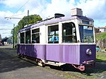 The tram retained her Graz livery of green and white until 2002 when, as part of the celebrations to mark the Queens Golden Jubilee, she was given a special colour scheme of purple and white.
