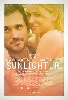 Sunlight Jr. is a 2013 American drama film directed by Laurie Collyer and starring Naomi Watts and Matt Dillon.[2] The film is a poignant vignette following a couple expecting their first child. The couple must come to grips with their dire financial situation while in the midst of an unplanned pregnancy and its subsequent challenges. The film is inspired by Barbara Ehrenreich’s non-fiction book “Nickel and Dimed” which investigates many of the difficulties low-wage workers face.[3]
