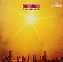 Sunshine is the fourth studio album released by The Archies, a fictional bubblegum pop band of The Archie Show and the Archie Comics universe. The album includes 12 tracks and was issued on Kirshner Records. All tracks were produced by Jeff Barry with the exception of four songs ("Mr. Factory", "Dance", "Comes The Sun" and "One Big Family") that were written and produced by Neil Brian Goldberg. All four were mistakenly credited to Barry; Goldberg was a staff writer working under Barry's supervision at the time.[1] The album features the single "Sunshine". The song peaked at number 57 on the Billboard Hot 100.[2] Another single, "A Summer Prayer For Peace", was only released overseas and topped the charts in South Africa. The album peaked at number 137 on the Billboard Top LPs chart.[3]