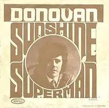 "Sunshine Superman" is a song written and recorded by Scottish singer-songwriter Donovan. It was released as a single in the United States through Epic Records (Epic 5–10045) in July 1966, but due to a contractual dispute the United Kingdom release was delayed until December 1966, where it appeared on Donovan's previous label, Pye Records (Pye 7N 17241). The single was backed with "The Trip" on both the US and UK releases. It has been described as "[one of the] classics of the era",[8] and as "the quintessential bright summer sing along".[9][10]